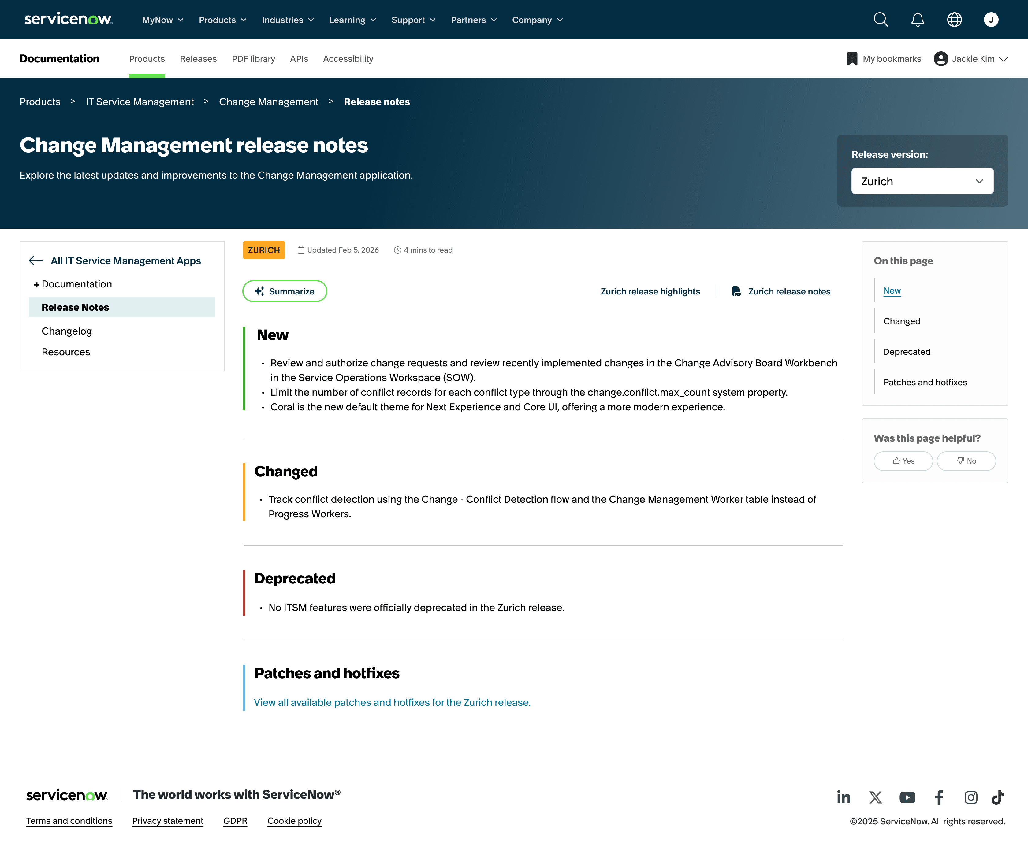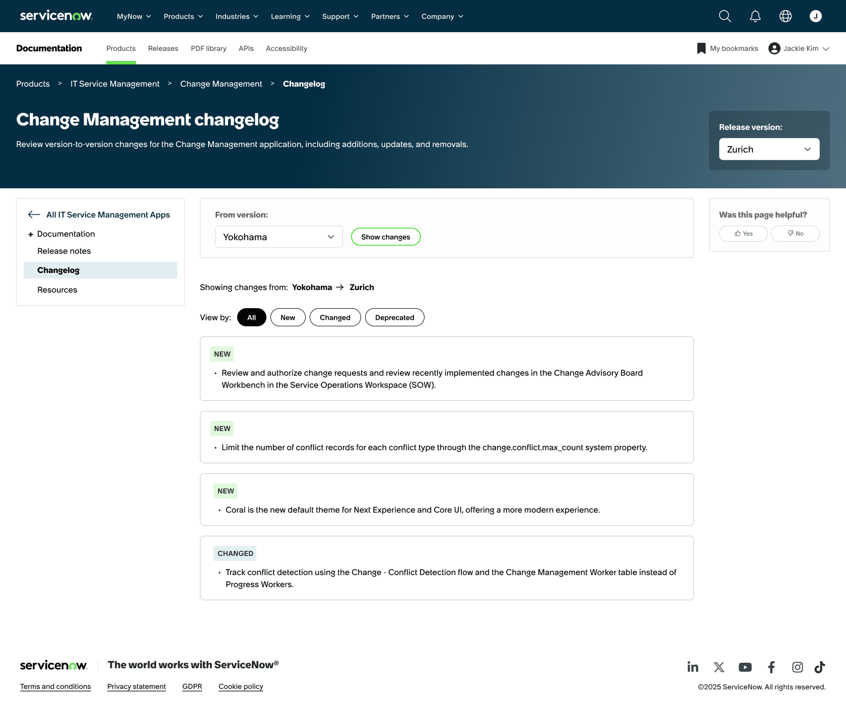 The redesigned experience reduced steps to find relevant release notes and improved clarity around changes between versions, reducing friction across the upgrade workflow. Personalization helped users focus on product-relevant updates, while a changelog improved visibility into changes, supporting more confident upgrade planning. The work will also establish a scalable foundation for a monthly release cadence and will be showcased at ServiceNow’s Knowledge conference to align stakeholders and gather early feedback.