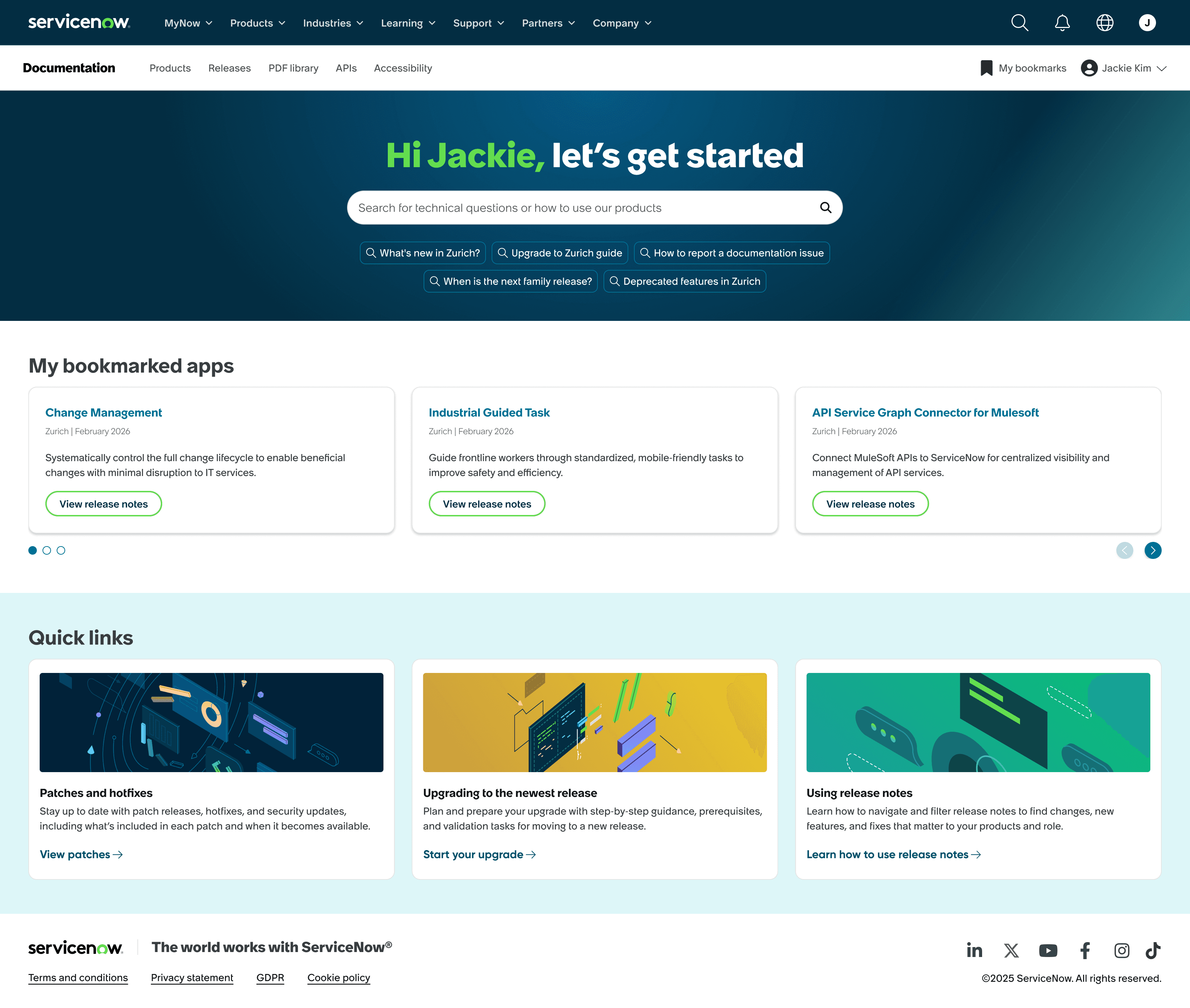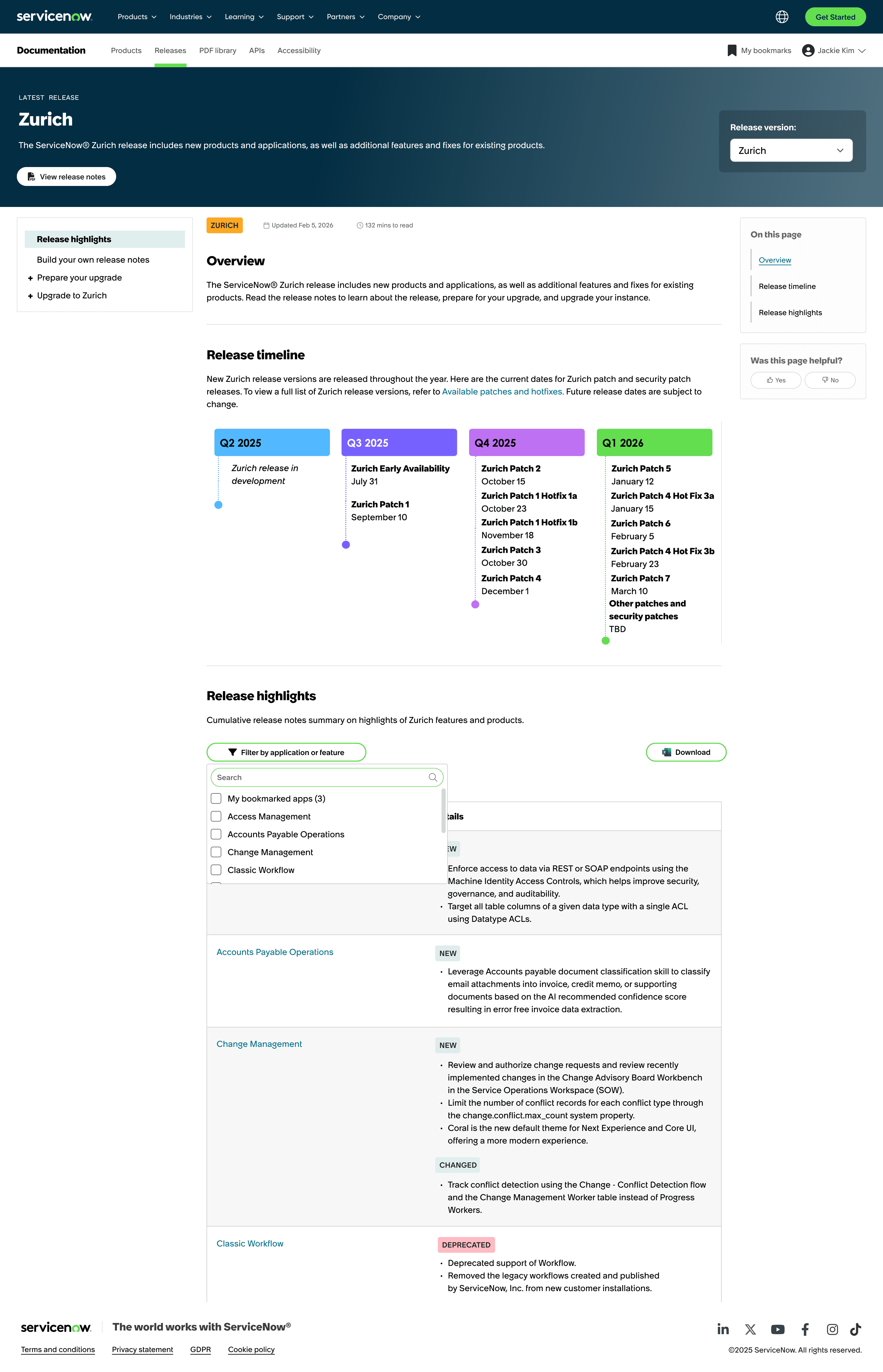 ServiceNow’s Product Documentation (Docs) release notes are a critical resource for users planning upgrades, troubleshooting, and staying current with product changes. However, the experience was difficult to navigate. Users often landed on the wrong version, encountered inconsistent content structures, and had to take multiple steps to find relevant information. There was also no way to filter updates by the products they owned, forcing users to scan through irrelevant content. As a result, users spent 8–12 hours per upgrade cycle piecing together release details, creating significant friction and inefficiency.